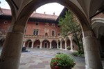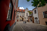 Este vistoso edificio fue la sede de una sociedad de mercaderes alemanes que se establecieron en la ciudad en torno al siglo XIV. Fue destruido por completo durante la segunda guerra mundial y reconstruido en 1999.