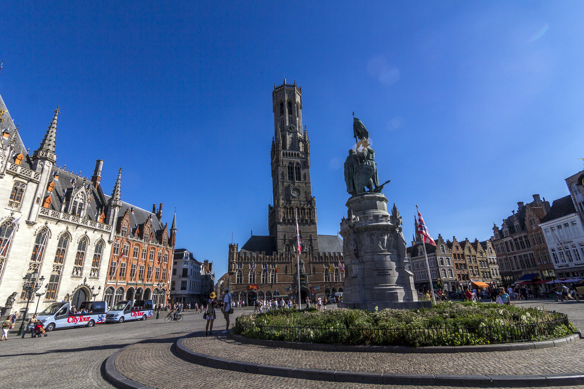 La plaza central de la ciudad, con la torre del Belfort omnipresente. Un lugar amplio y siempre bullicioso.