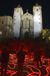 Tubos de leds rojos invadieron las calles de la ciudad monumental de Cáceres el 7 de mayo de 2010.