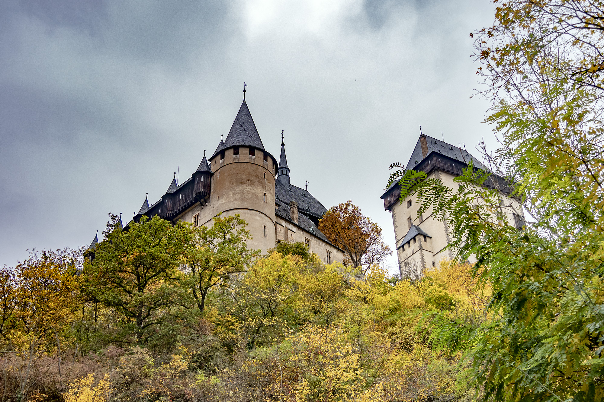 Construido en el siglo XIV por el famoso rey Carlos IV, se encuentra situado en un promontorio rodeado de bosques cerrados a 30 kilómetros al sur de Praga.