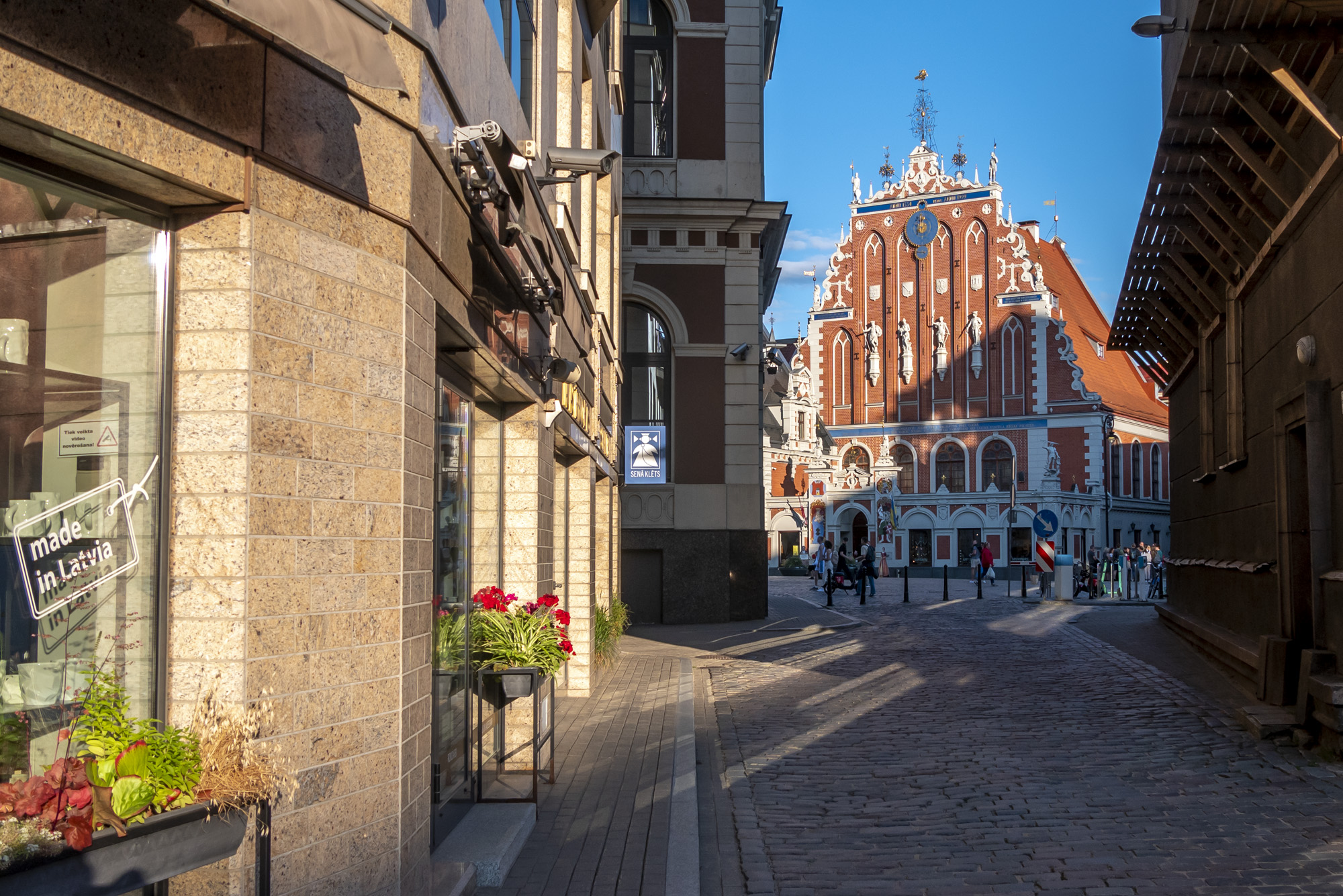 Este vistoso edificio fue la sede de una sociedad de mercaderes alemanes que se establecieron en la ciudad en torno al siglo XIV. Fue destruido por completo durante la segunda guerra mundial y reconstruido en 1999.